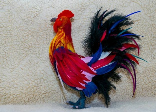 Символ 2017 Нового года прекрасный Петух! Мой петушок выполнен в стиле сухого валяния, ноги на каркасе. Петушок переливается различными цветами от желтого до синего. Вся основа петушка из шерсти (меринос), крылья и хвост покрыт перьями; лапы, глаза, клюв выполнен из полимерной глины. Петрович отлично украсить ваш стол, новогоднюю елку и принесет вам удачу!