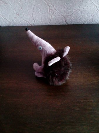 Ёжик с длинным носом. Сделан из меха и ткани. В отделке применены бусина и глазки