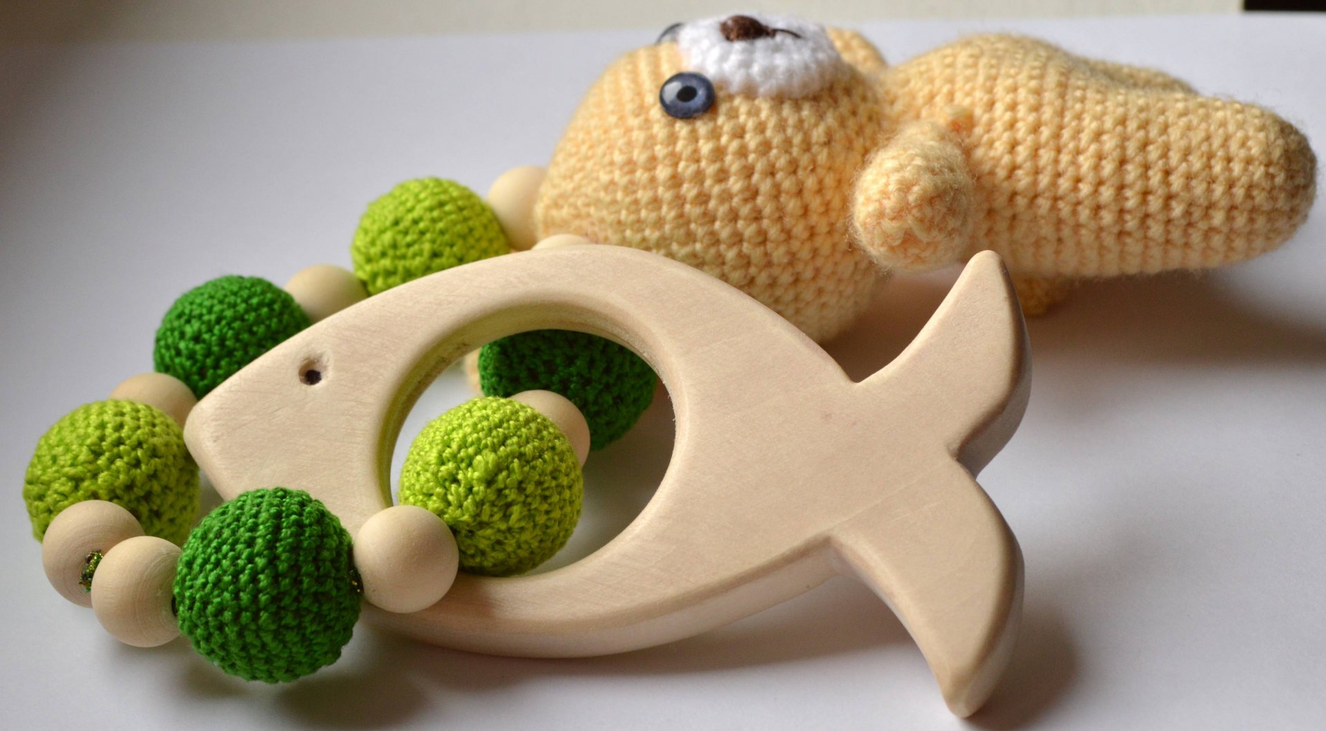 Игрушка медвежонок связана из детской пряжи и набита холофайбером. Это гипоаллергенные материалы, безопасные для малыша. Игрушка рыбка ручной работы, вырезана и отшлифована вручную из дерева липы- самое экологически чистое дерево. Бусины разных размеров, обвязаны хлопковыми ниточками. Прорезыватель приятно держать в руках, безопасные и натуральные материалы позволяют использовать игрушку использовать с рождения. Прекрасный подарок к любому празднику