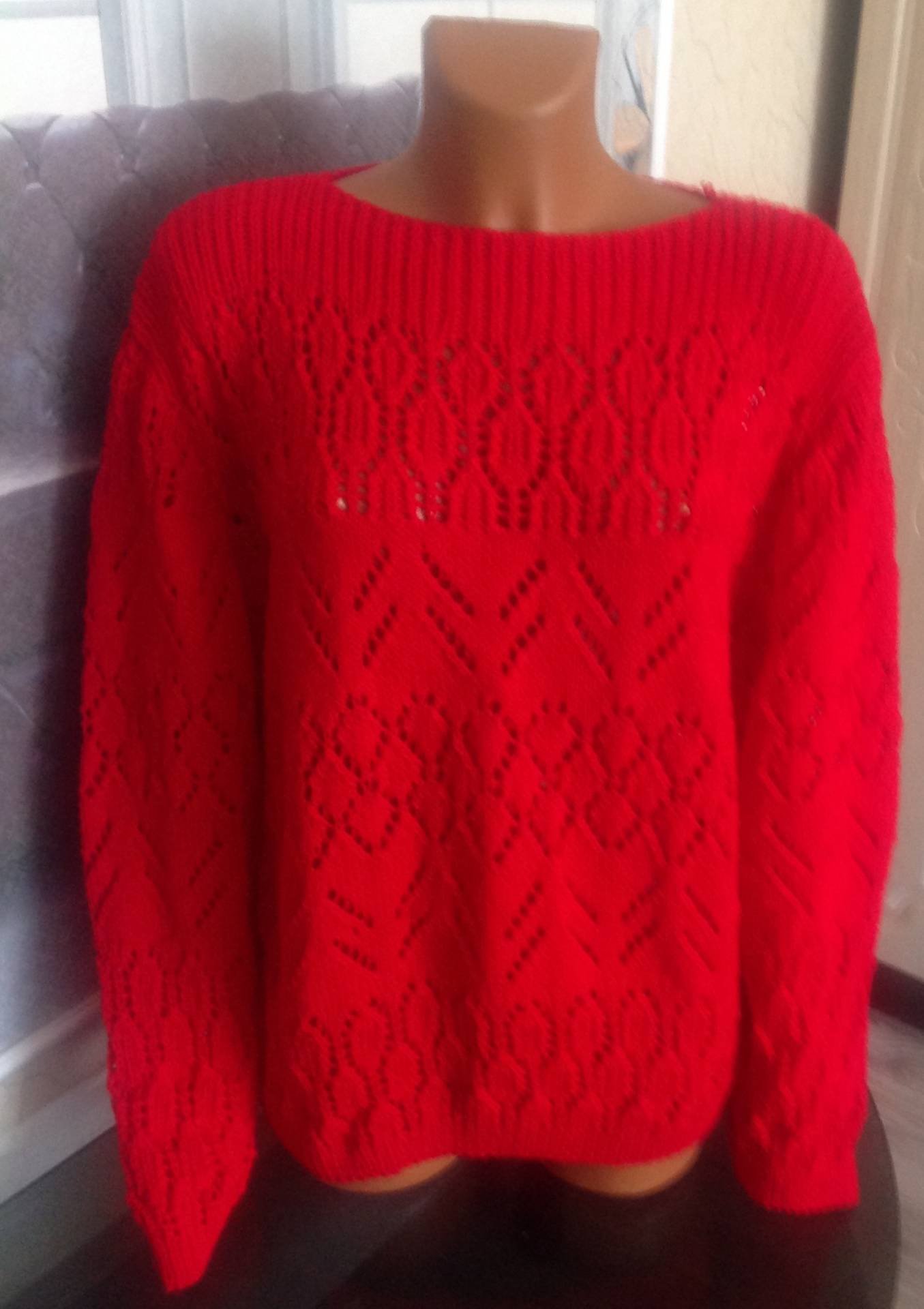 Тёплый уютный свитер связанный спицами сочетает в себе несколько ажурных узоров что придаёт изделию особую неповторимость р 52-54