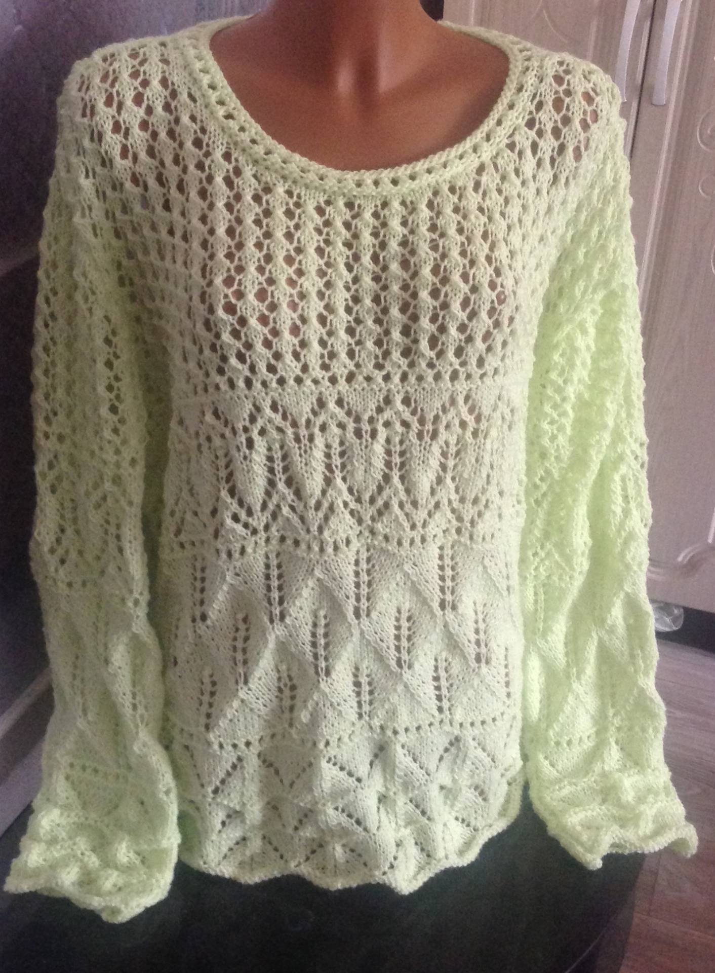 Ажурный джемпер связанный спицами рассчитан на женщину высокого роста сочетает в себе несколько узоров р 52-54