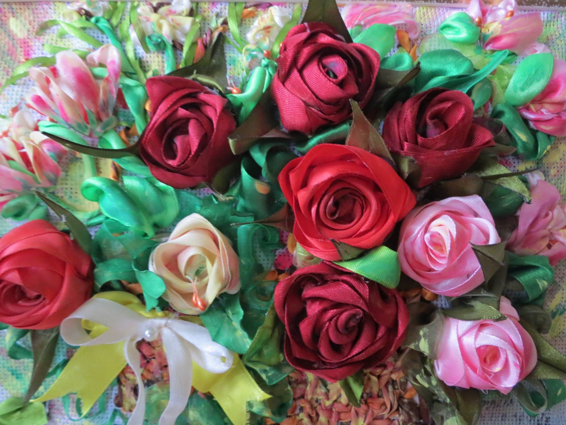 Картина лентами выполнена на высокачественной х.б. основе.Акриловые краски дополняют красоту цветов и оживляют мои работы. Оформлена в рамку 25x35 см.