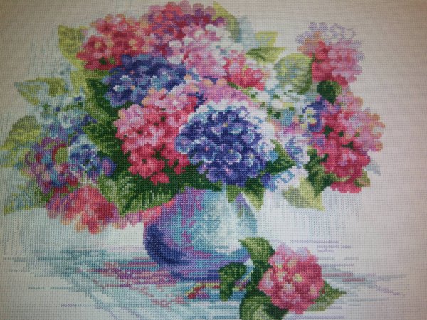 Вышивка "Гортензия", размер 35х30см., канва Аида 14, нитки мулине 26 цветов, без багетного оформления