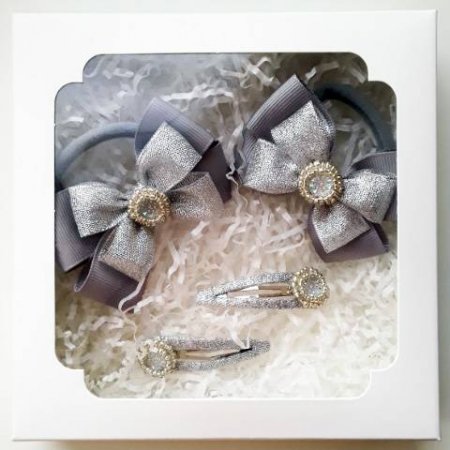 Цена указана за комплект из 2 бантиков и 2 заколок в подарочной упаковке.
