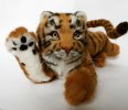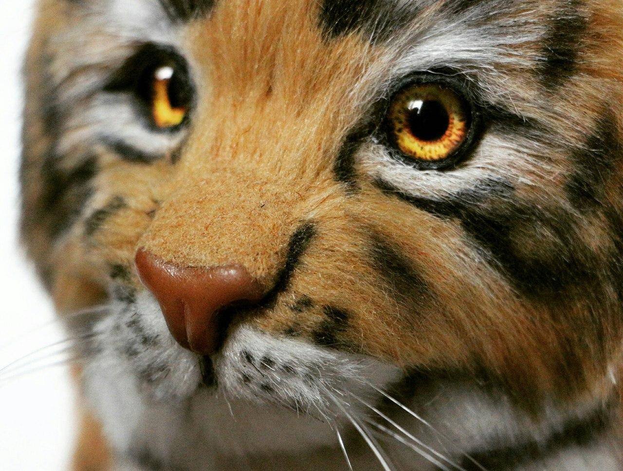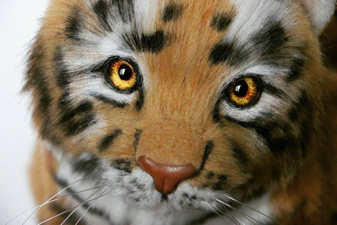 Игрушка сшита из немецкого искусственного меха, набита синтепухом и металлическим гранулятом. Глазки стеклянные, ручной работы. В игрушку вшит скелет, это делает её тело и лапки подвижными. Подушечки и нос слеплены из полимерной глины. Ушки и хвост армированы.