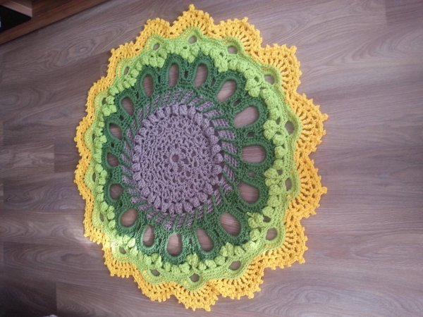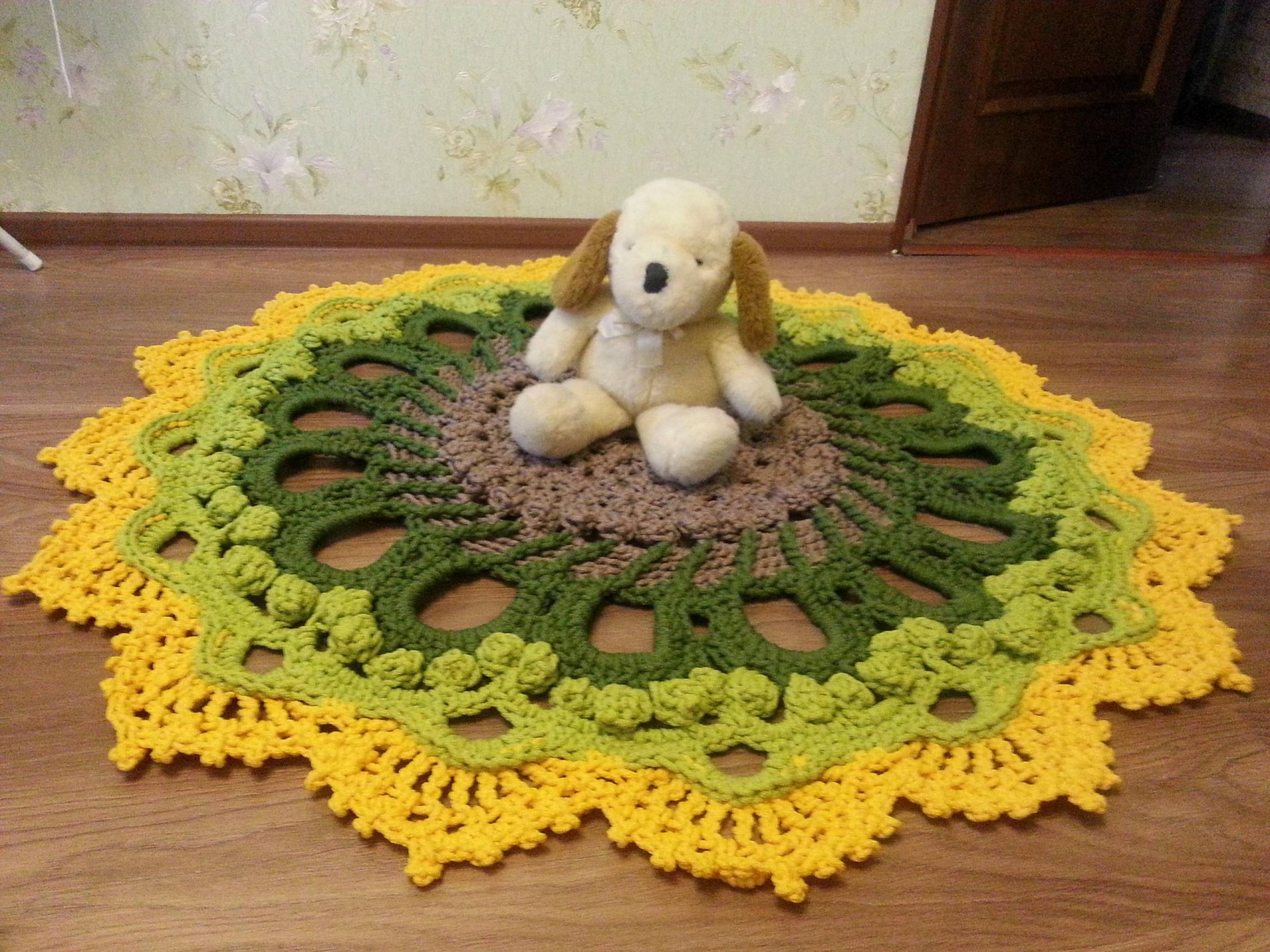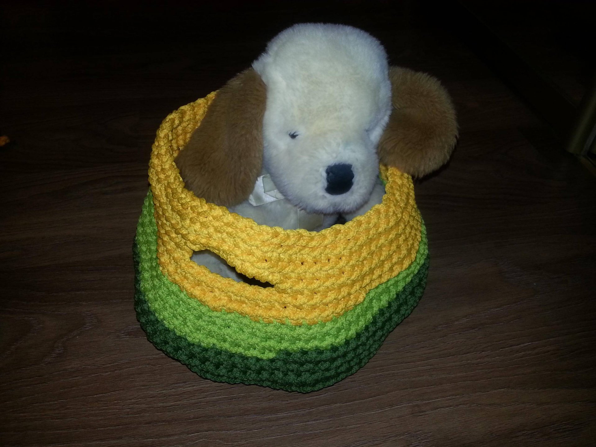 Яркий комплект из коврика и корзины связан крючком из полиэфирного шнура. Теплый, мягкий, уютный, практичный. Легко стирается в стиральной машине при температуре 30 градусов, не линяет, не выгорает, гипоаллергенный. Быстро сохнет в расправленном виде. Размер коврика 128см. Корзина 32х20. Отправка бесплатно.